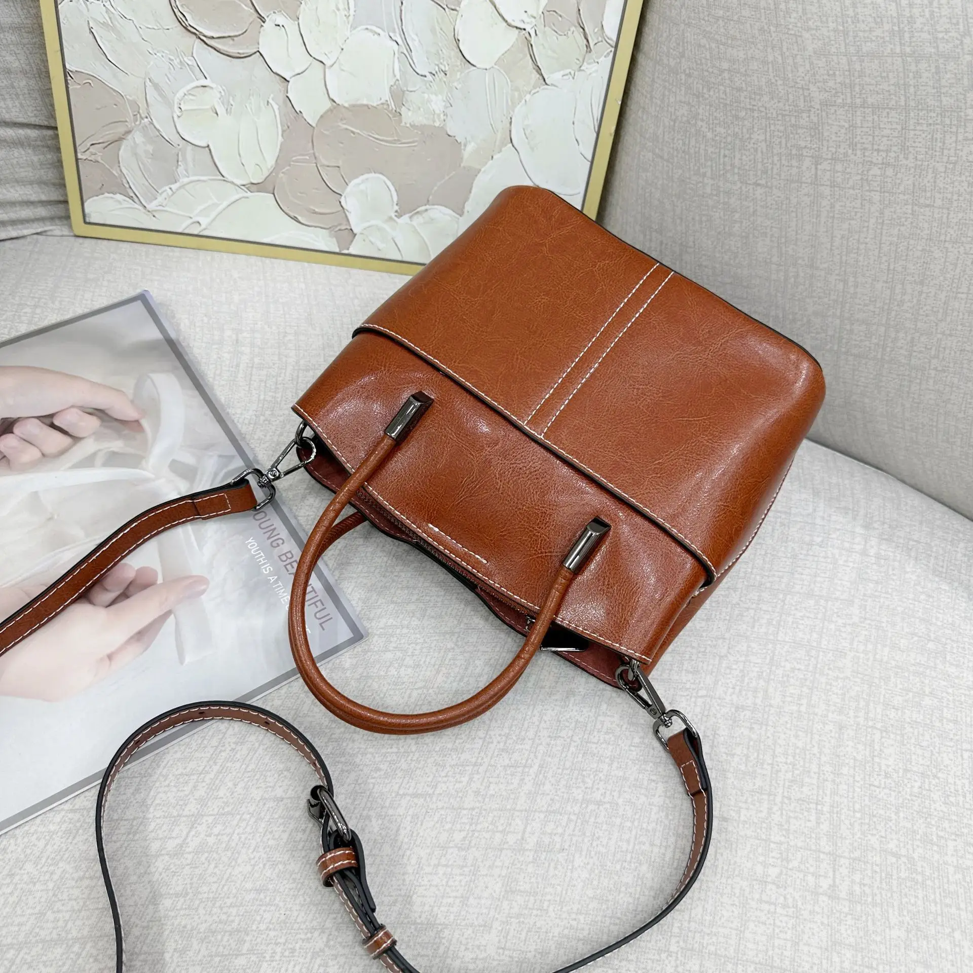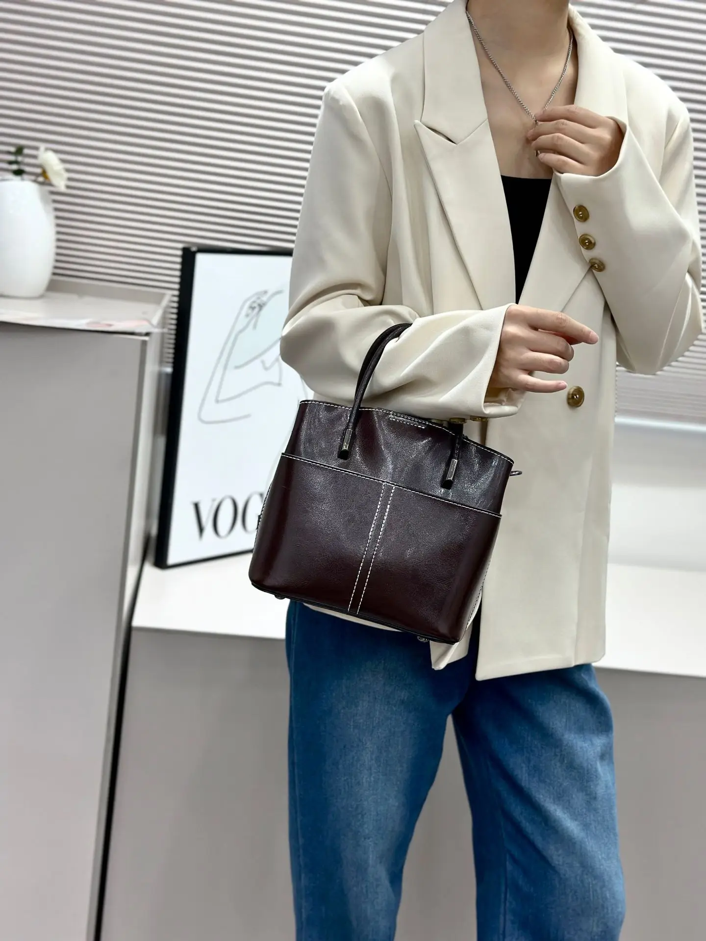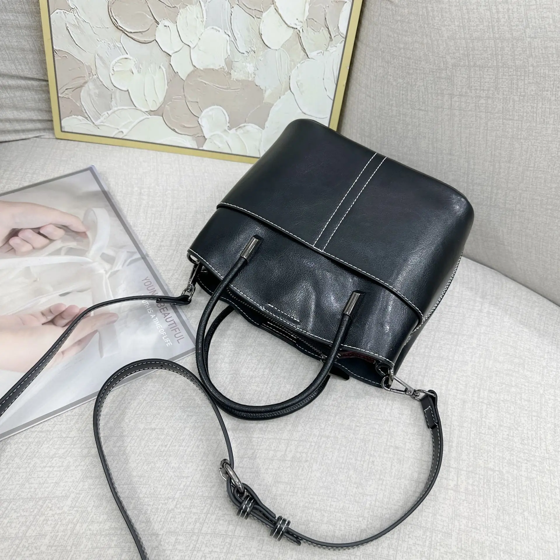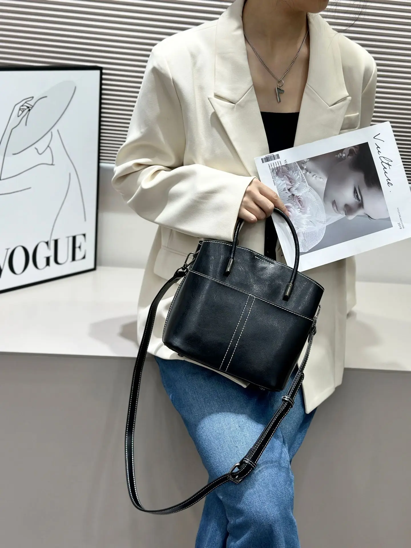 2025 New Genuine leather Women's Handbag Cowhide Crossbody Bag Light Luxury Bucket Bag Fashion And Casual shoulder bag