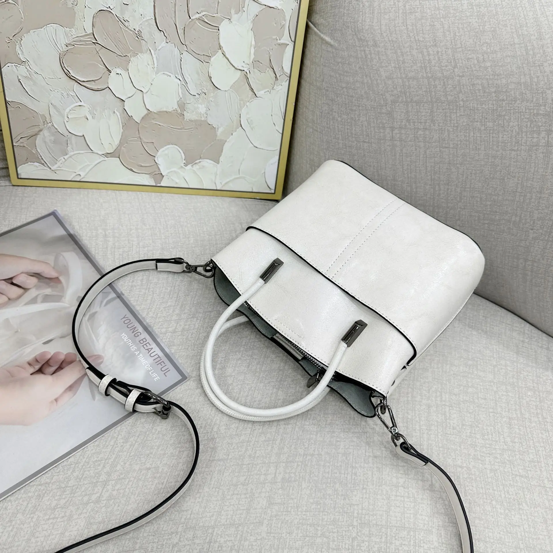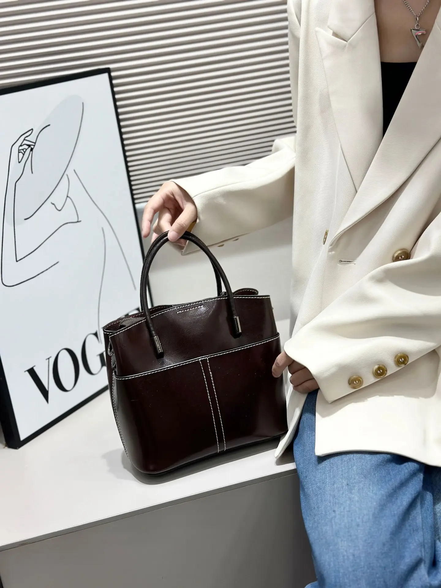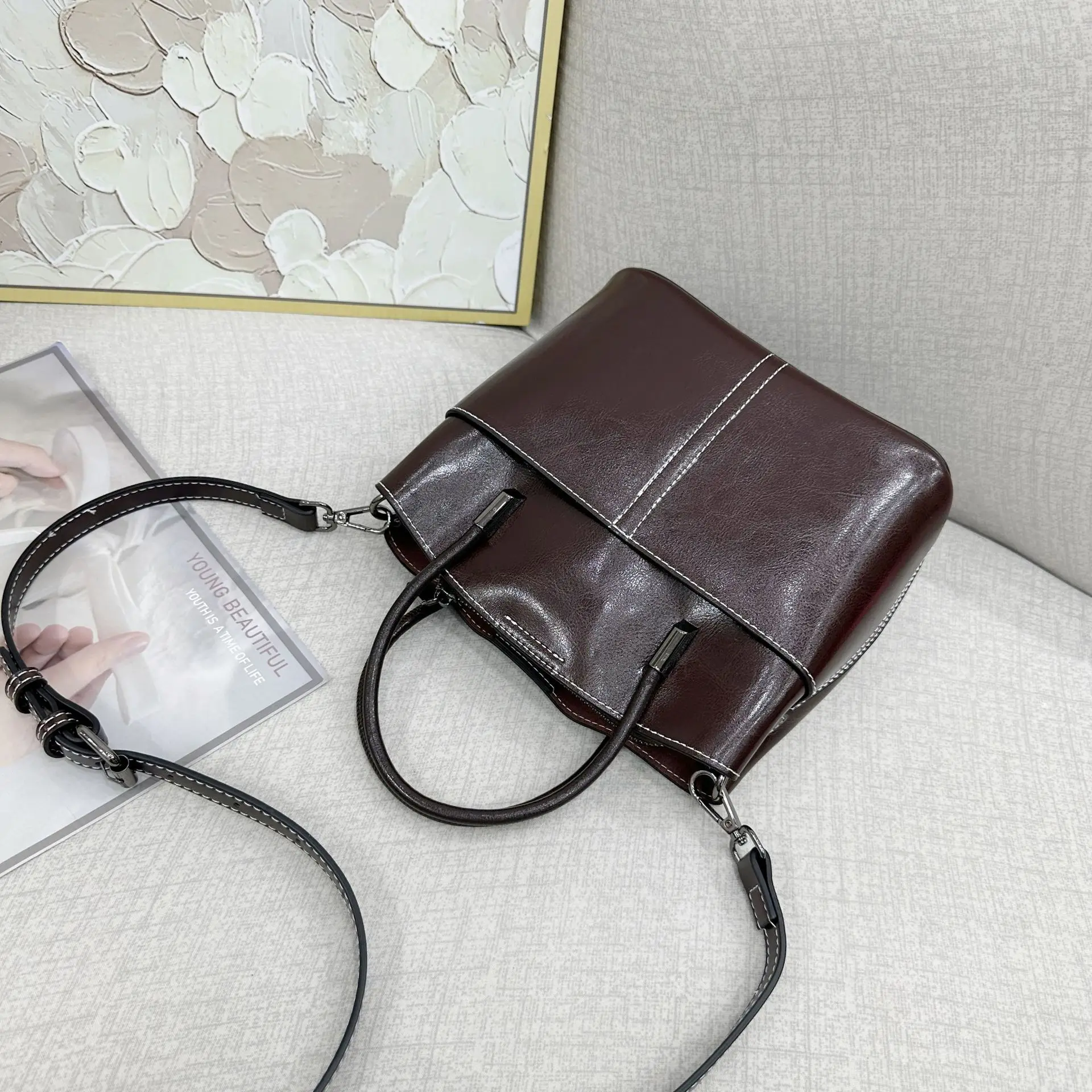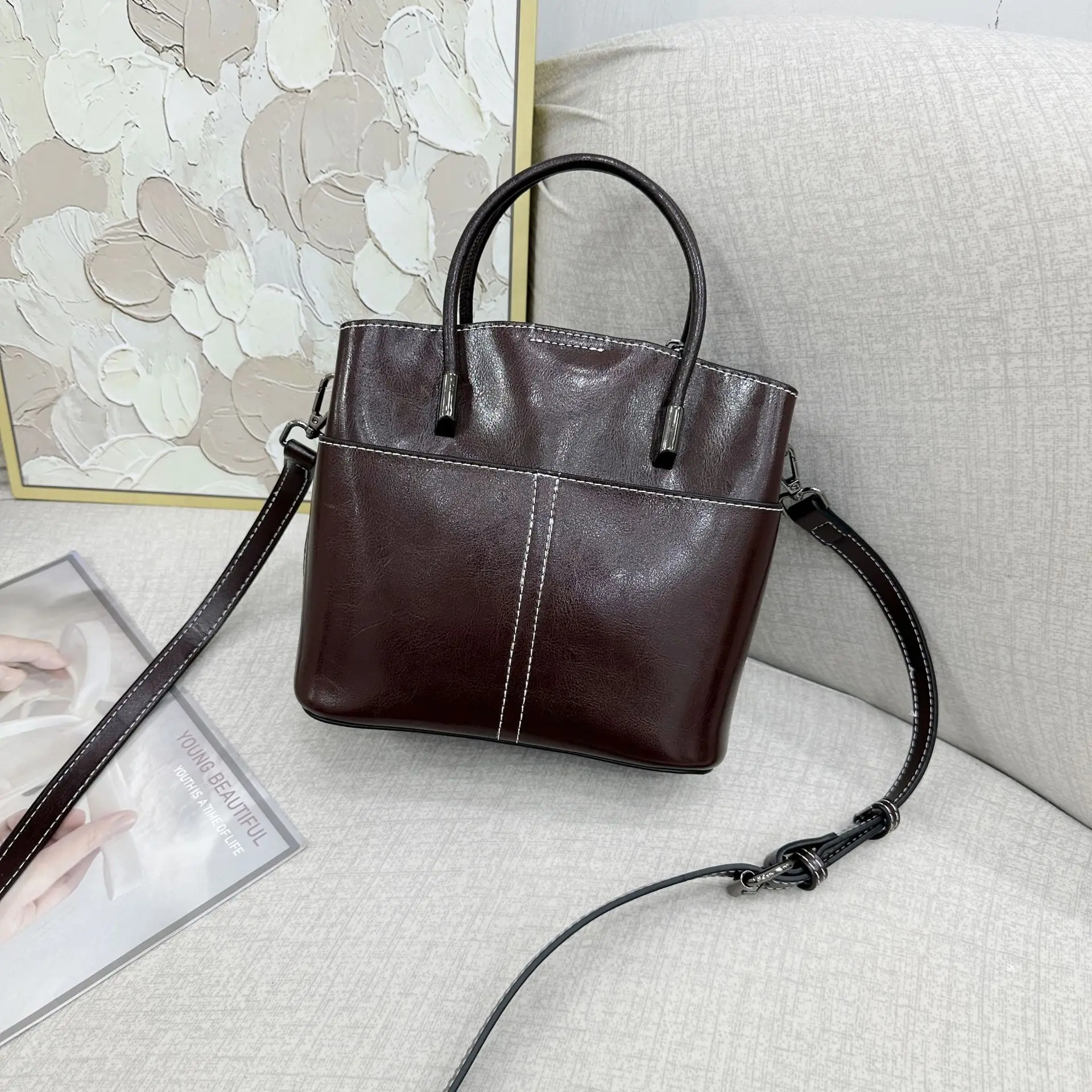2025 New Genuine leather Women's Handbag Cowhide Crossbody Bag Light Luxury Bucket Bag Fashion And Casual shoulder bag