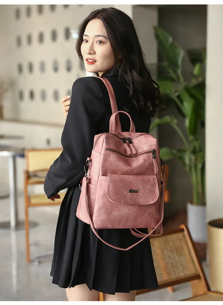 2025 new Retro style women backpack PU Leather large capacity daily backpack for travel female Commuting backpack gift for women