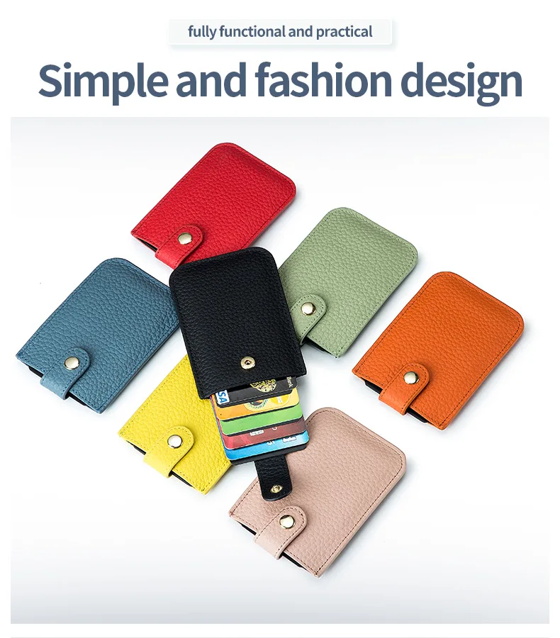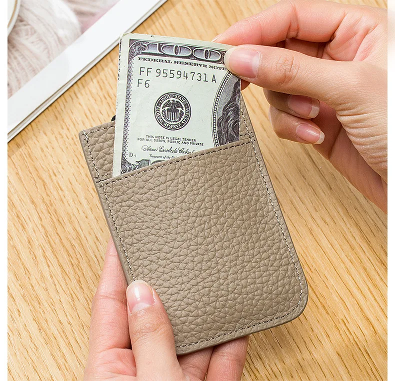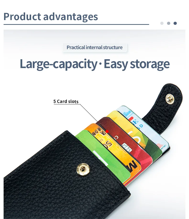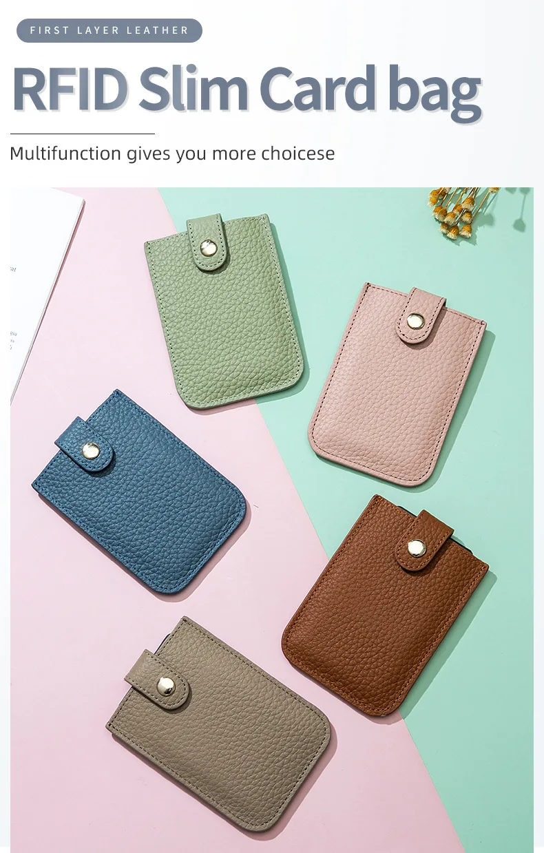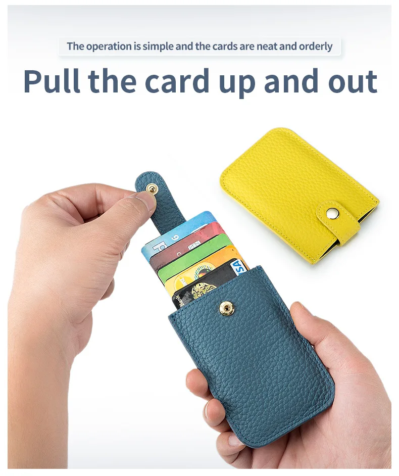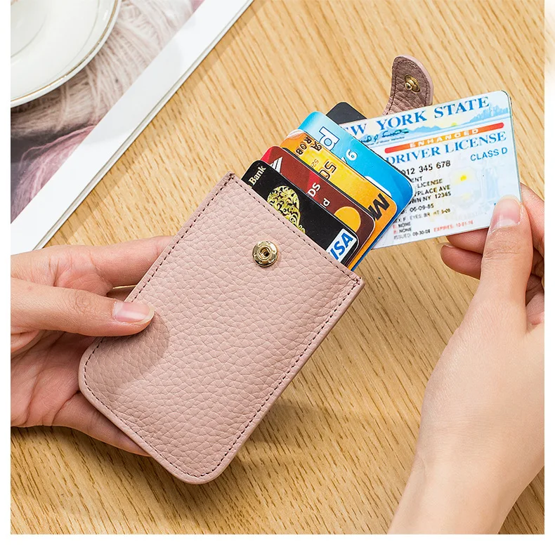 Cards Bag Pull-out Design Large Capacity genuine leather Card Sleeve Can Hold 5 Cards Storage Pouch for Bank ID VIP Cards