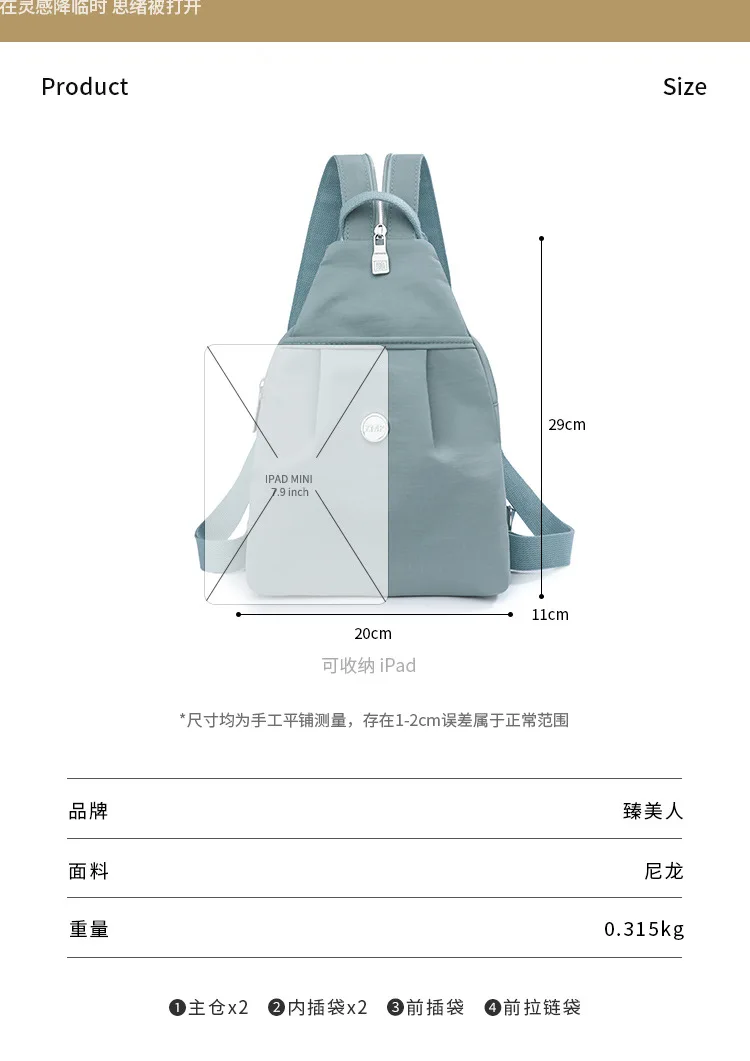 Chest bag, crossbody bag, women's dual-use Oxford single shoulder bag, new personalized trend, small backpack for women