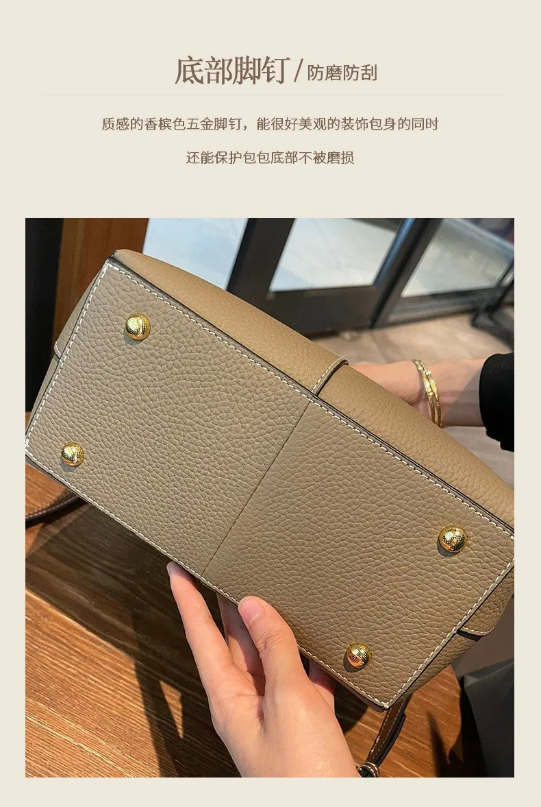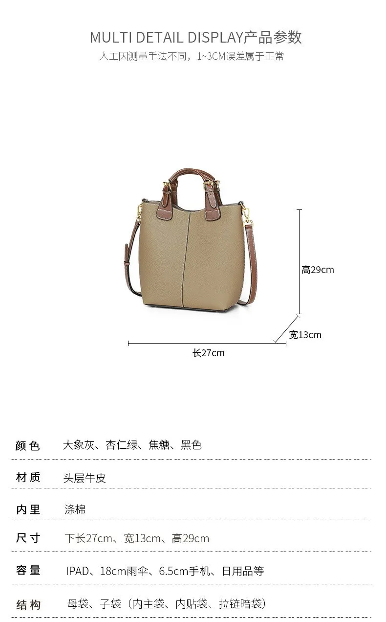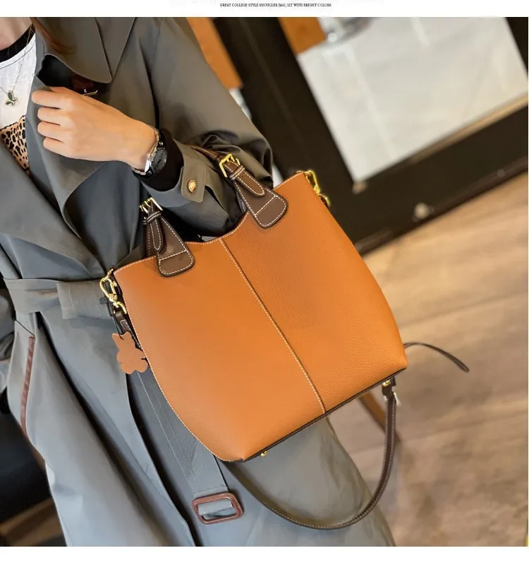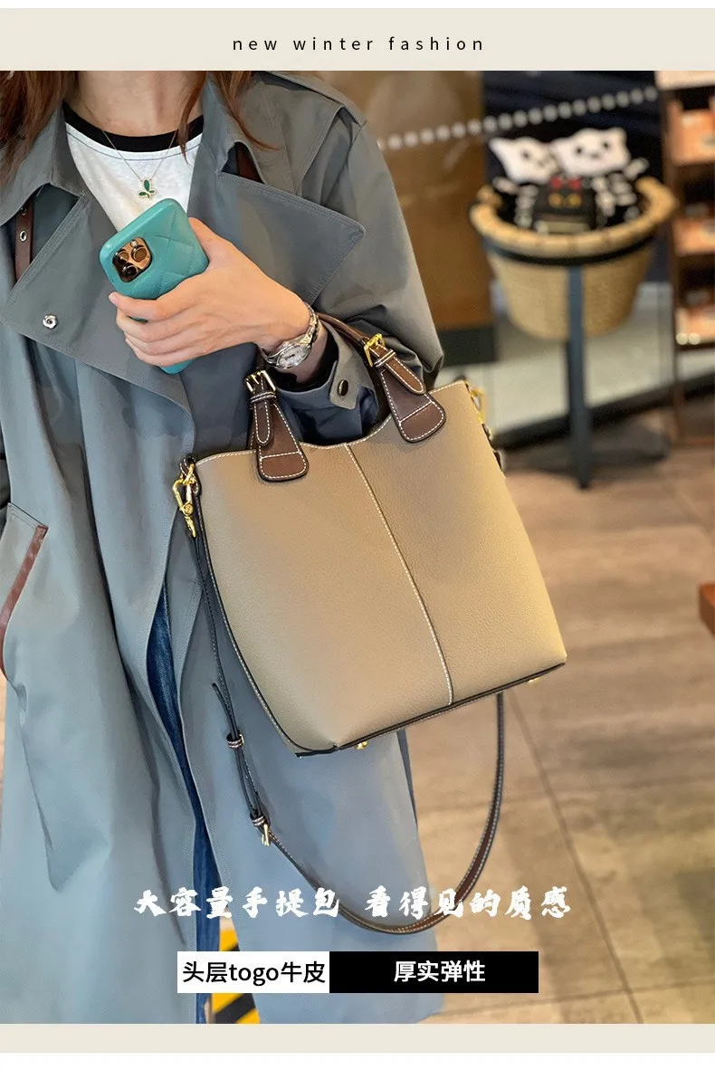 first layer cowhide women's bucket bag high quality versatile handbag large-capacity commuter tote bag crossbody bag shoulder