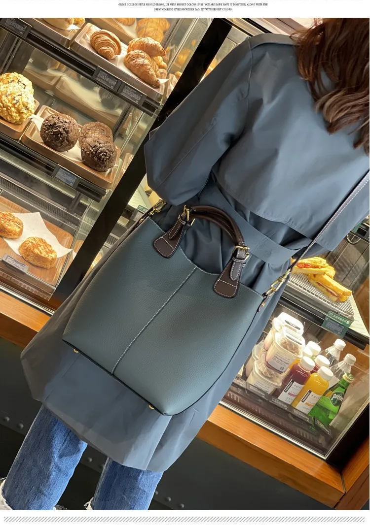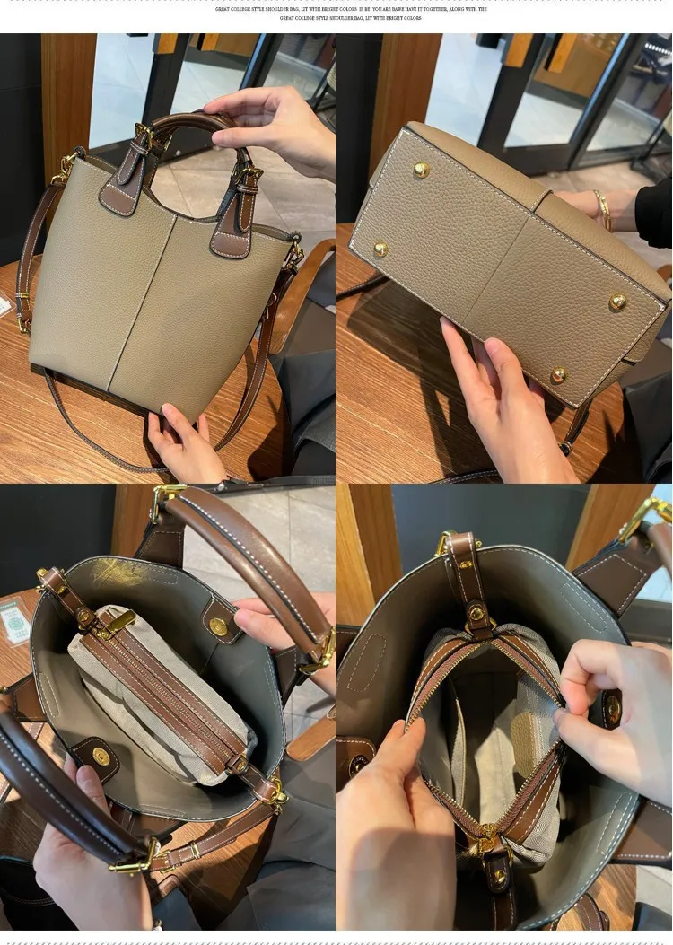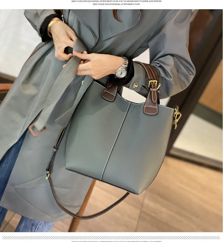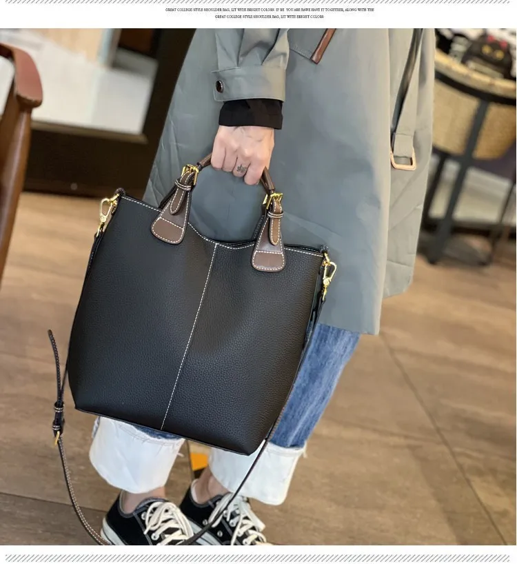 first layer cowhide women's bucket bag high quality versatile handbag large-capacity commuter tote bag crossbody bag shoulder
