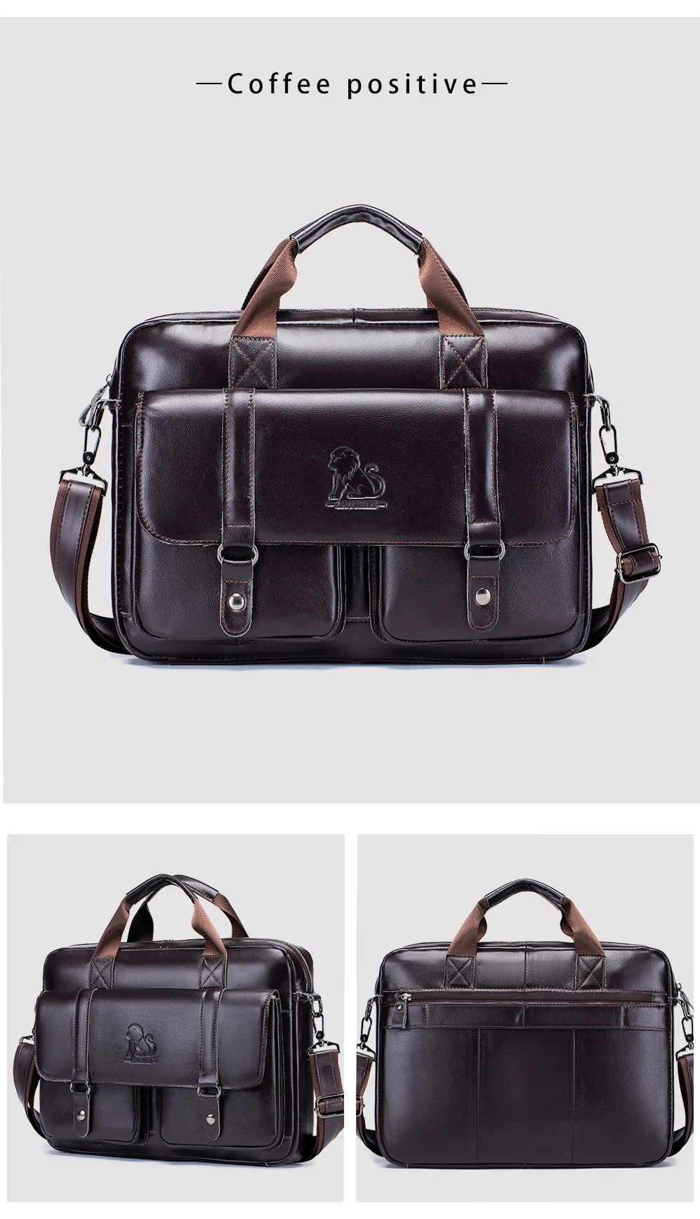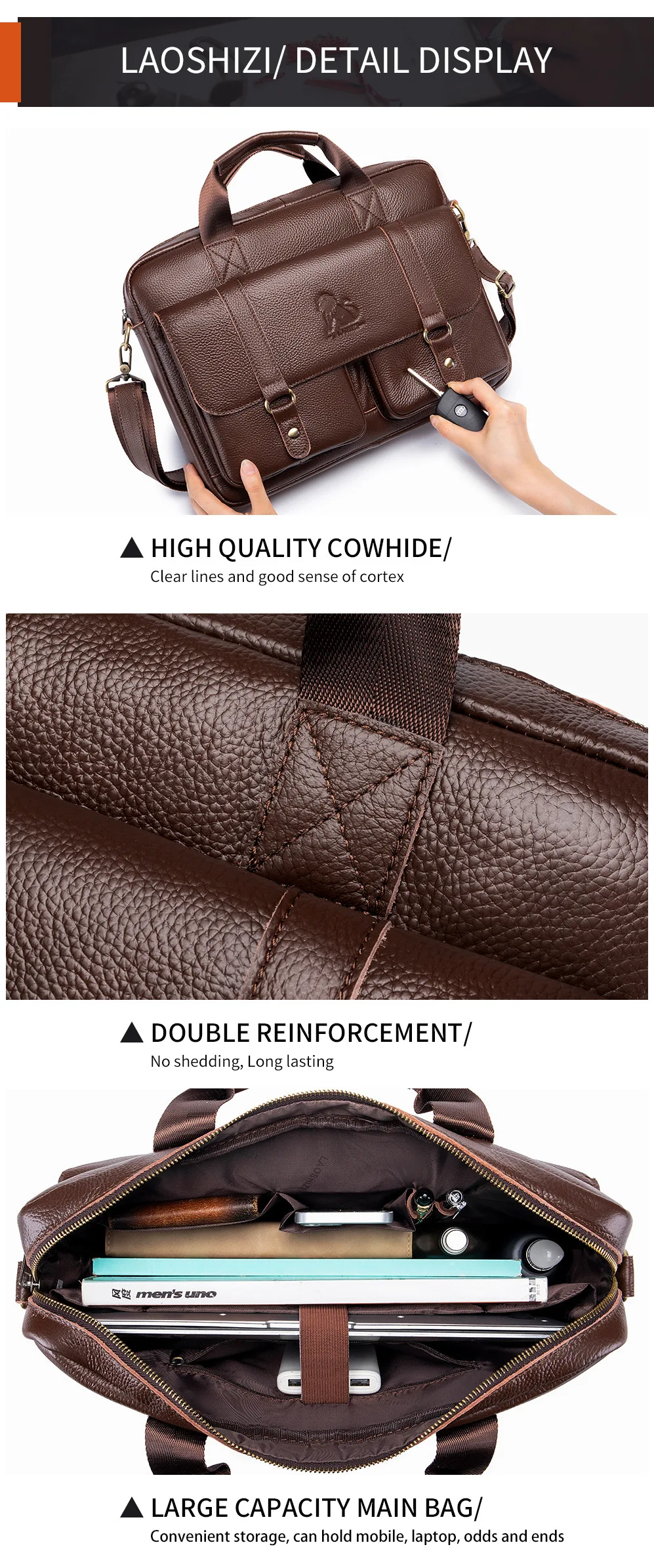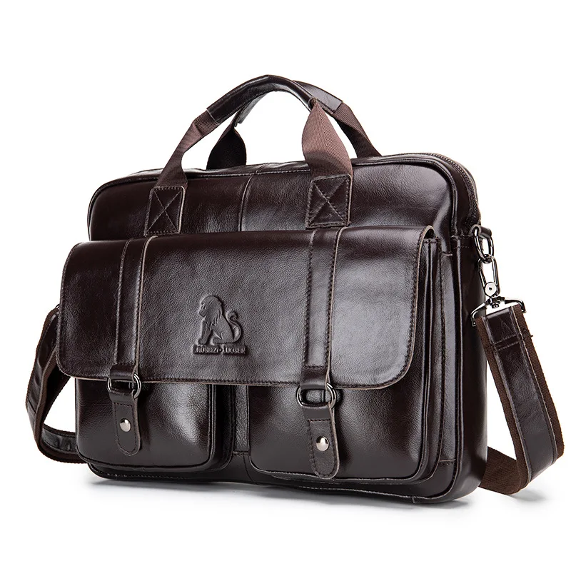 Genuine leather Men's briefcase business 16-inch handbag cowhide computer bag shoulder fashion Commuting crossbody bag for men