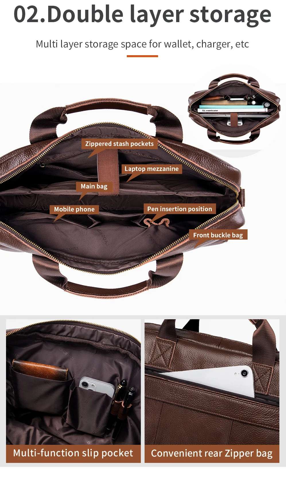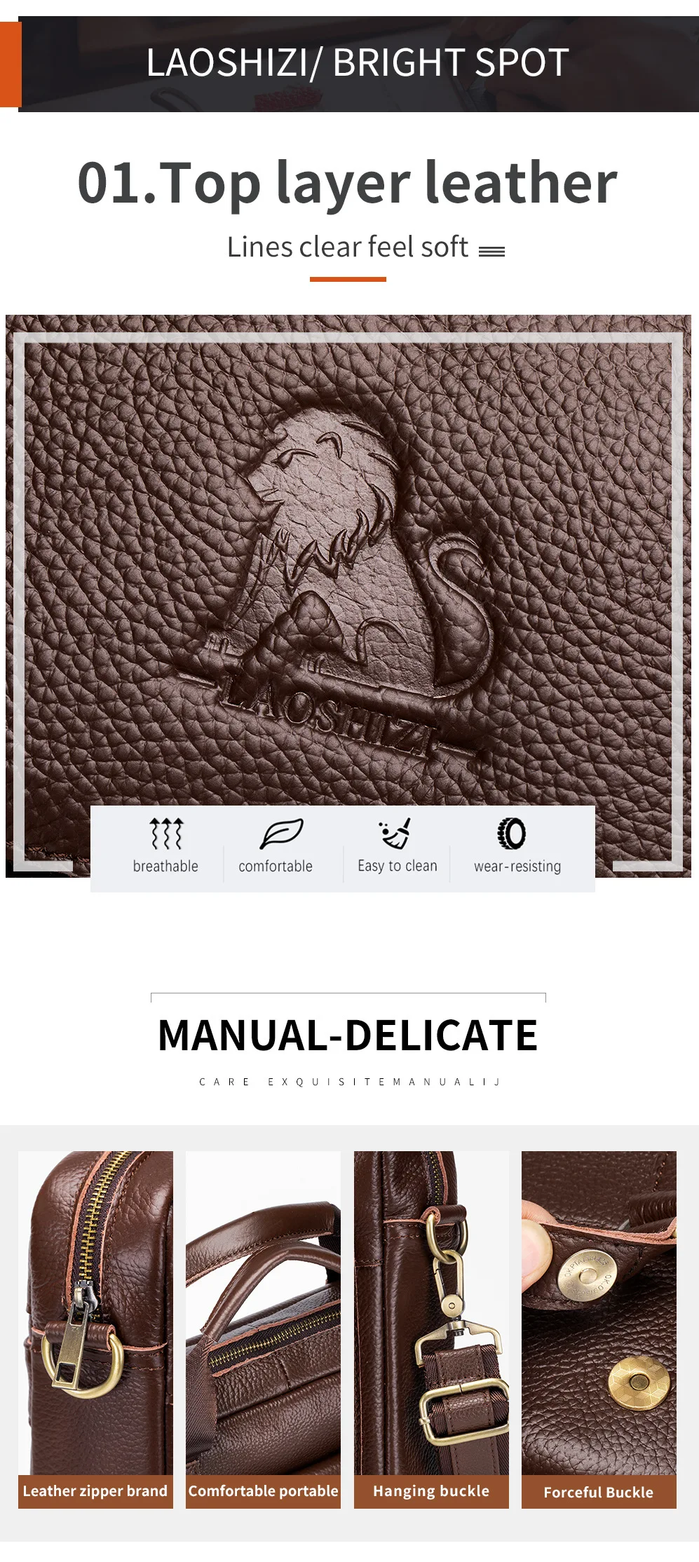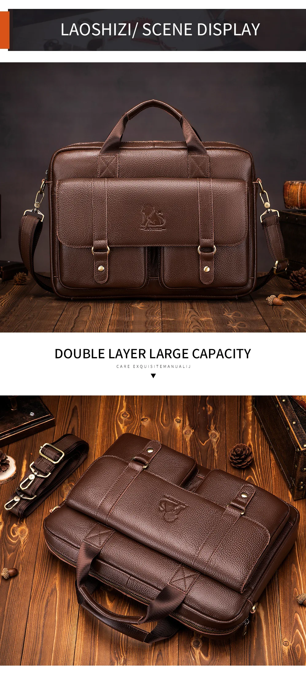 Genuine leather Men's briefcase business 16-inch handbag cowhide computer bag shoulder fashion Commuting crossbody bag for men