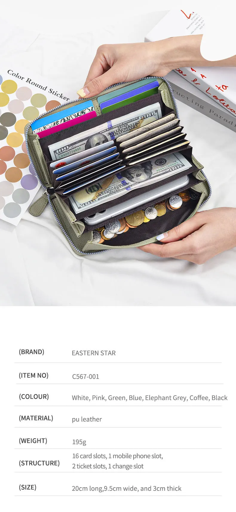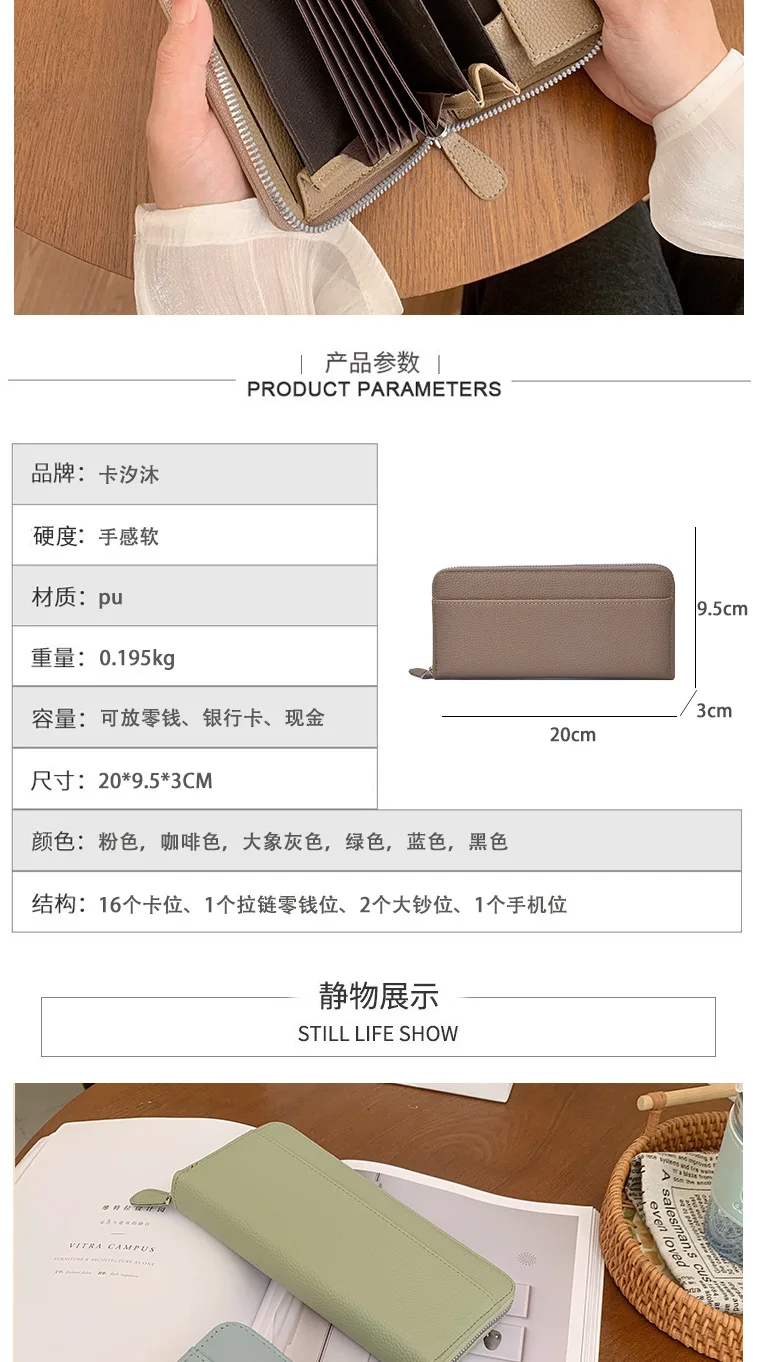 Long Zipper Wallet for Women pu Leather Large Capacity Credit Card Holder Wallets with Coin Pouch Money Pockets ladies wallets