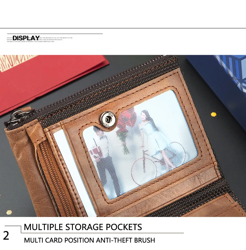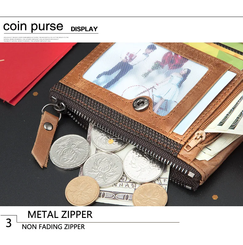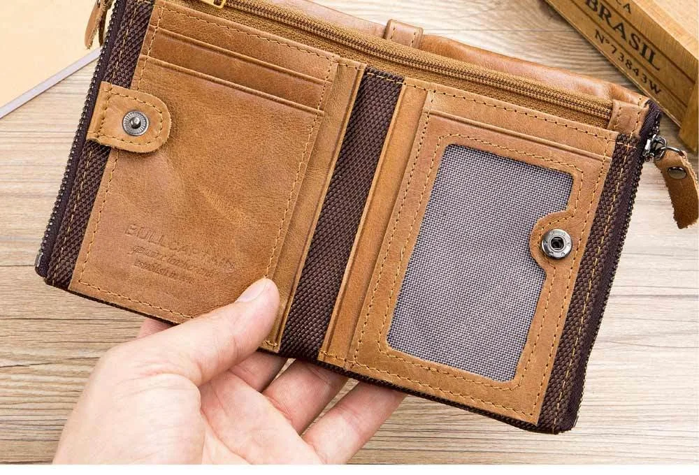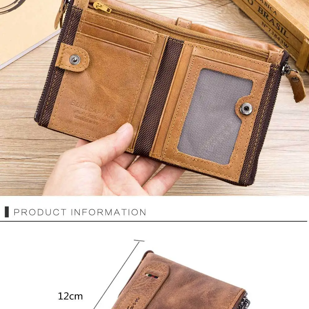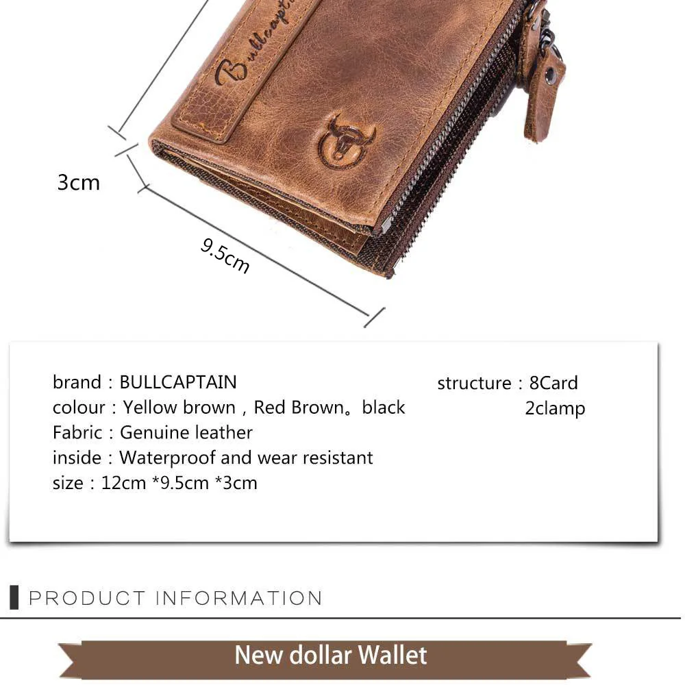 Retro Style Genuine Leather men's zipper wallet vertical casual short photo album driver's license cowhide change wallet