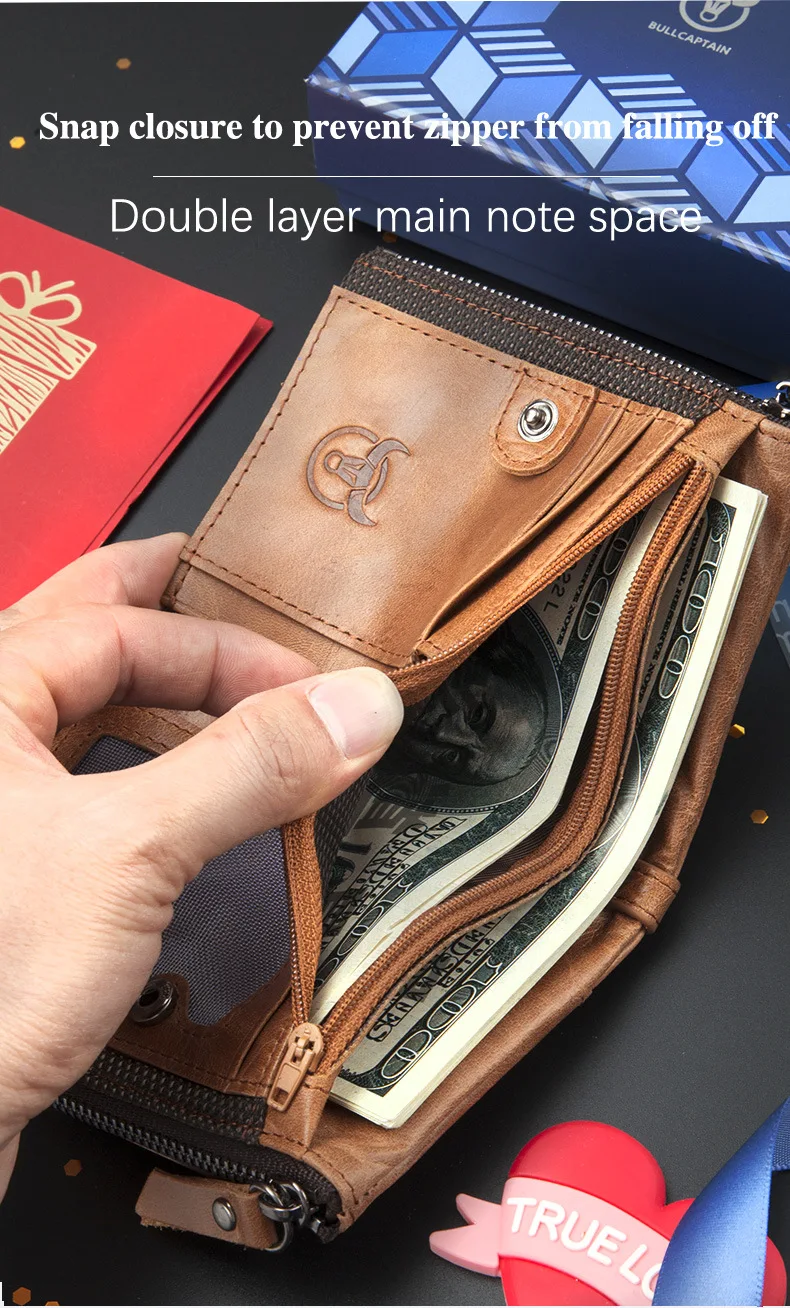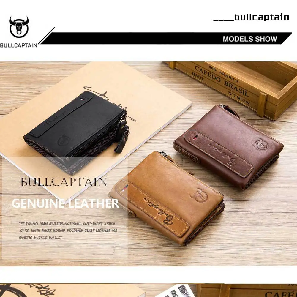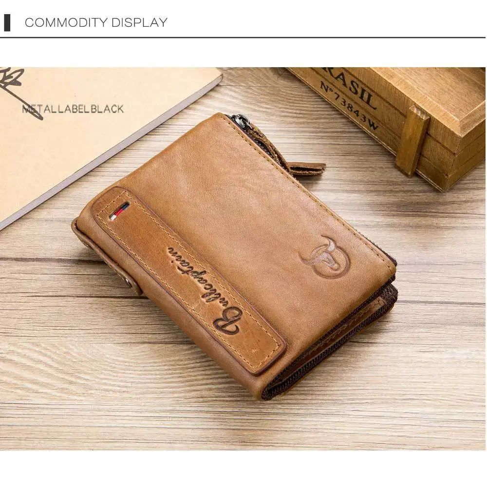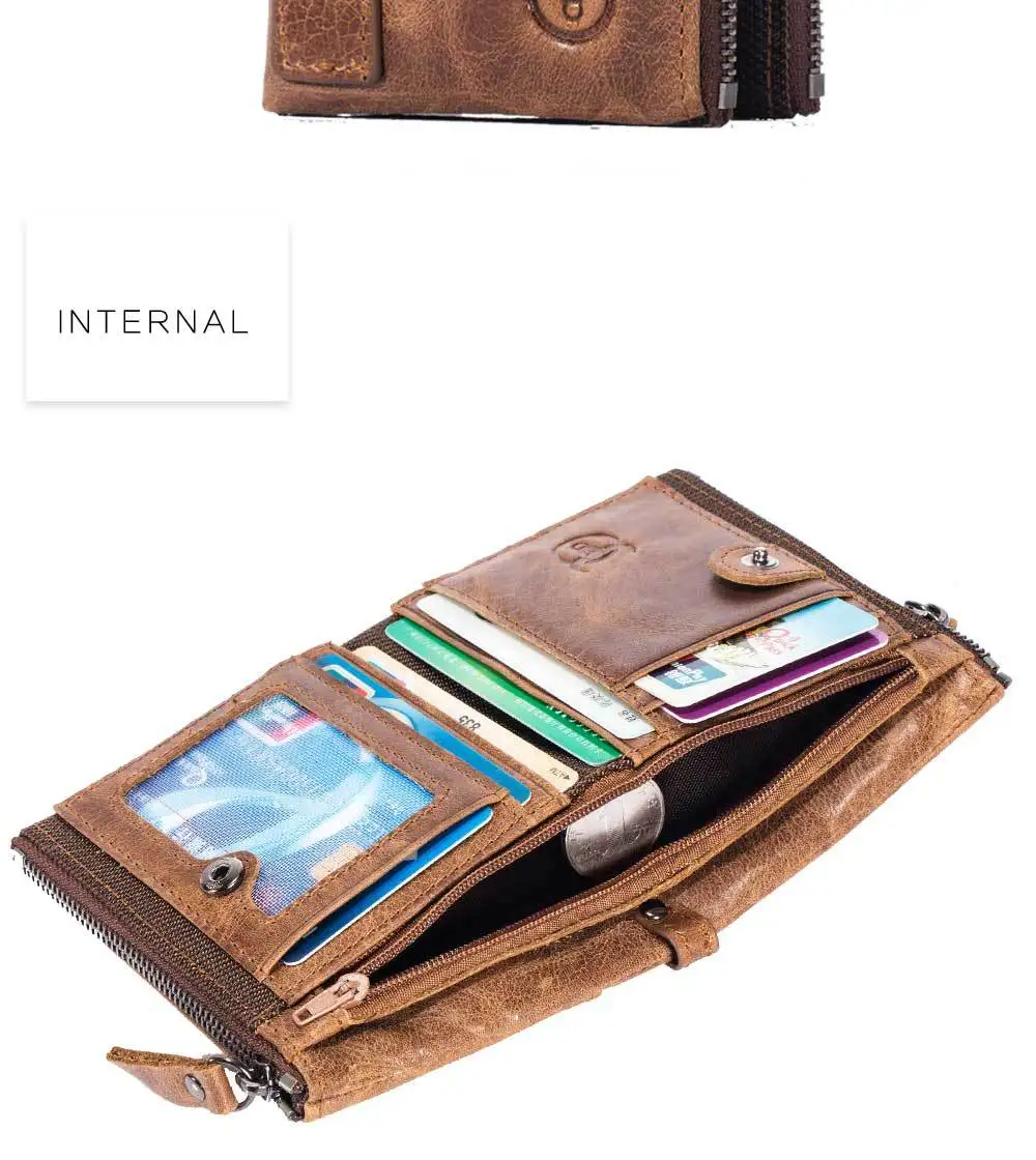 Retro Style Genuine Leather men's zipper wallet vertical casual short photo album driver's license cowhide change wallet